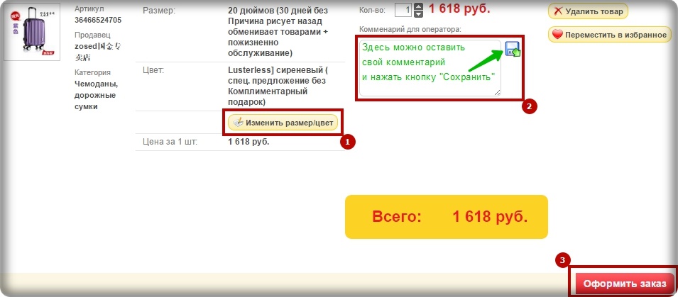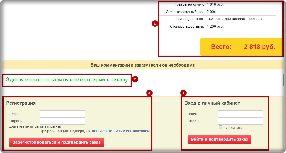 - При необходимости оставить комментарий к заказу (для оператора сайта)