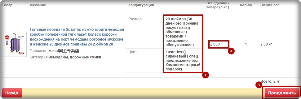 ШАГ 5. Проверить ориентировочный вес товаров: